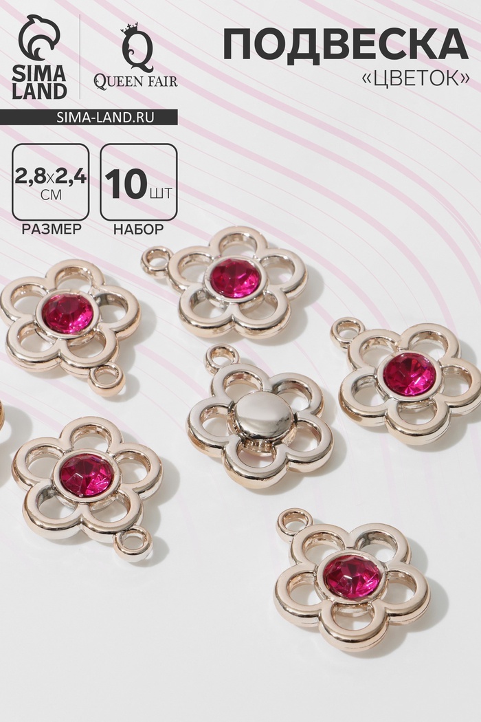 Подвеска «Цветок» (набор 10 шт.), цвет ярко-розовый в золоте