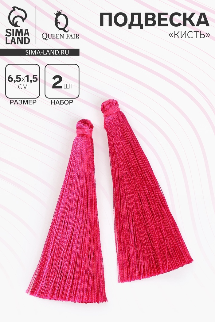 Подвеска декоративная «Кисть», набор 2 шт., L кисти 6,5 см, цвет ярко- малиновый