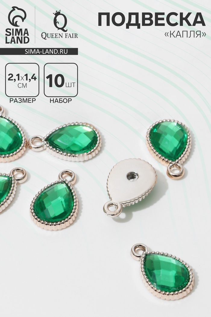 Подвеска «Капля» рифлёная 2,1×1,4×0,4 см,(набор 10 шт.), цвет зелёный в золоте