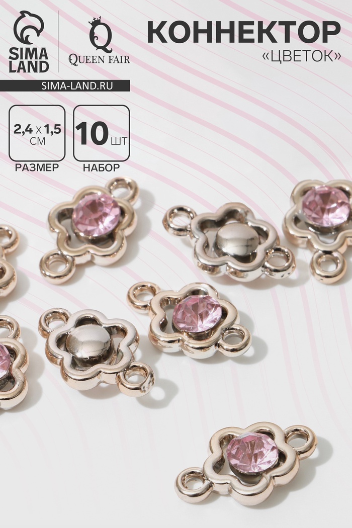 Коннектор «Цветок» 2,4×1,5×0,7 см, (набор 10 шт.), цвет сиреневый в золоте