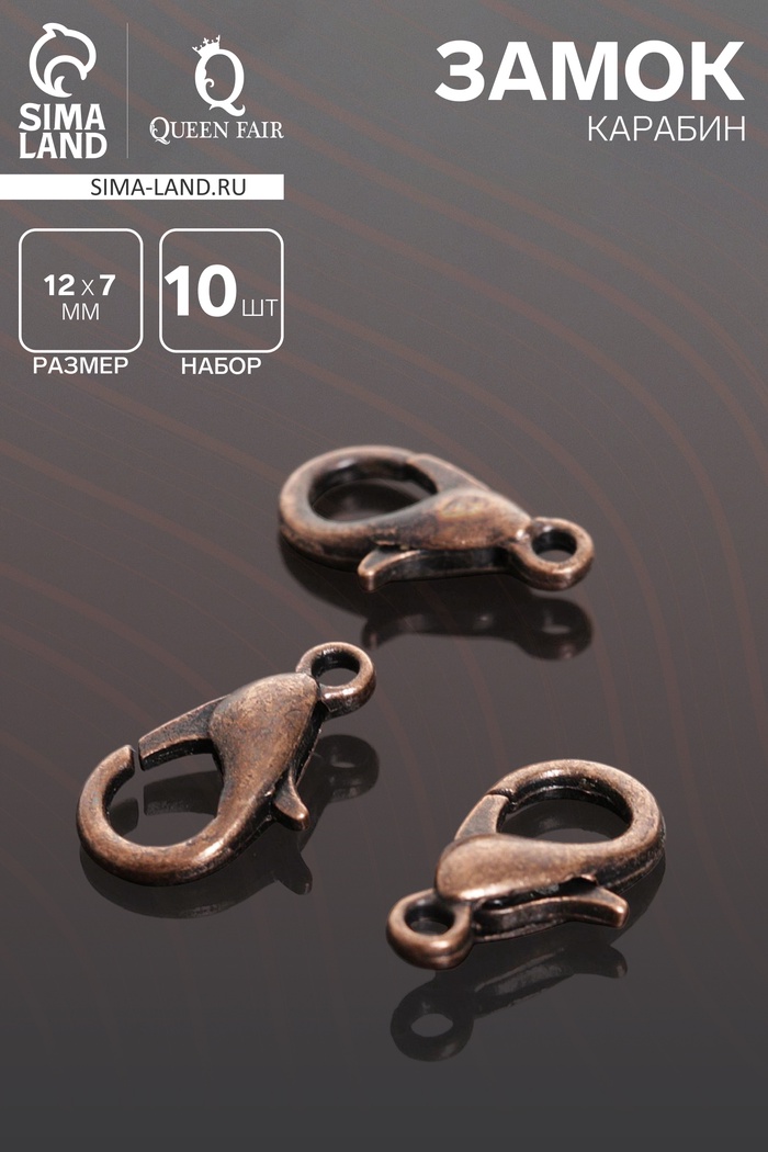 Замок карабин СМ-536, (набор 10 шт.), 12×7 мм, цвет чернёной медный