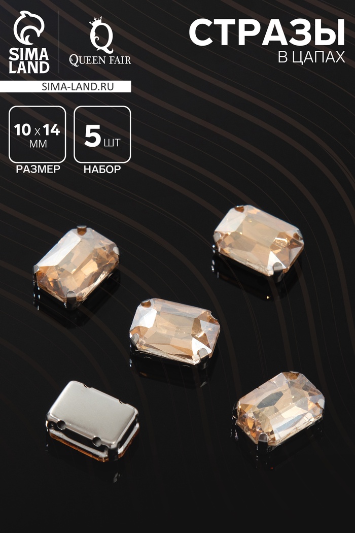Стразы в цапах (набор 5 шт.), 10×14 мм, цвет коричневый в серебре