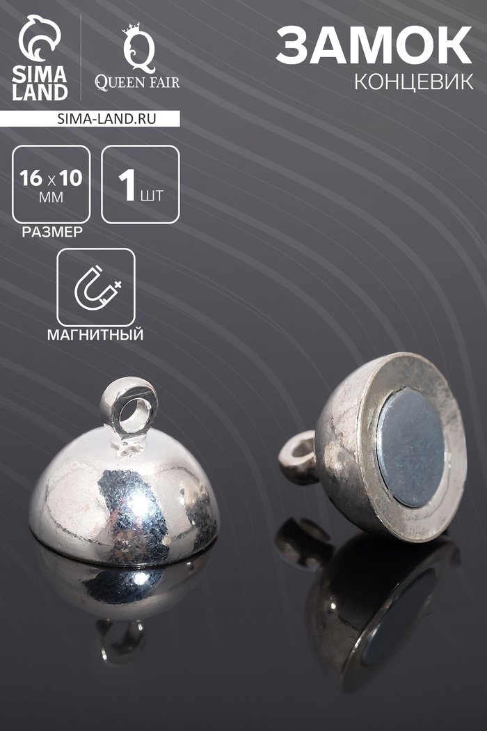 Замок-концевик магнитный 16×10 мм, петель=1,2 мм, шарик, цвет серебро
