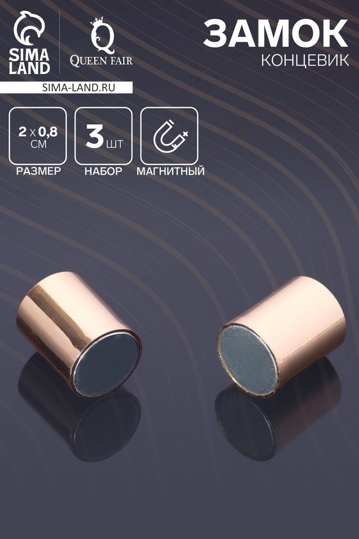 Замок-концевик магнитный, L=20 мм, d (внутренний)=8 мм, (набор 3 шт.), цвет золото