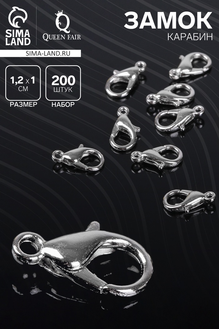 Замок-карабин 12 мм, набор 200 шт., цвет серебро