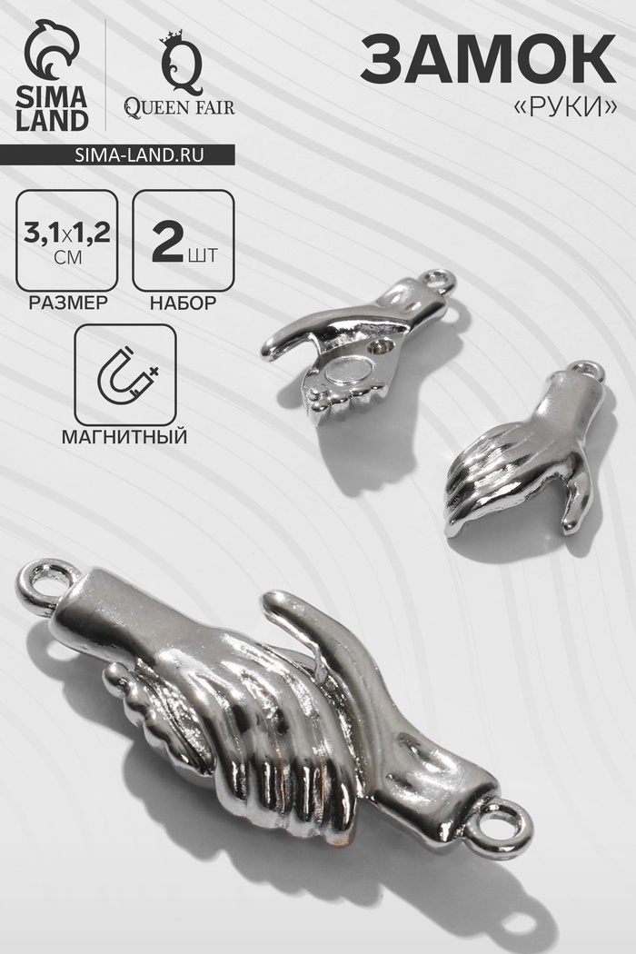 Замок магнитный «Руки» (набор 2 шт.), цвет серебро