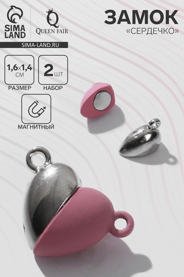 Замок магнитный «Сердечко» (набор 2 шт.), цвет серебристо-розовый
