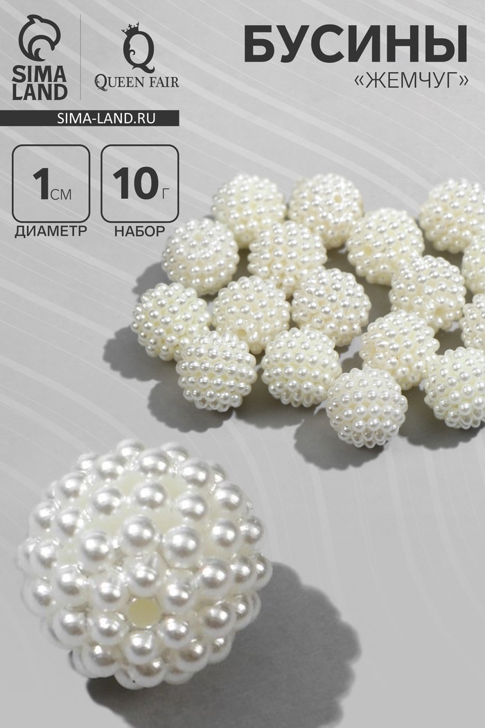 Бусины пластиковые «Жемчуг», шарик, d=1 см, набор 10 г, белые
