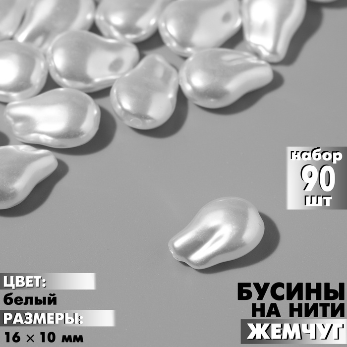 Бусины пластиковые на нити «Жемчуг», 16×10 мм, набор 90 шт, цвет белый