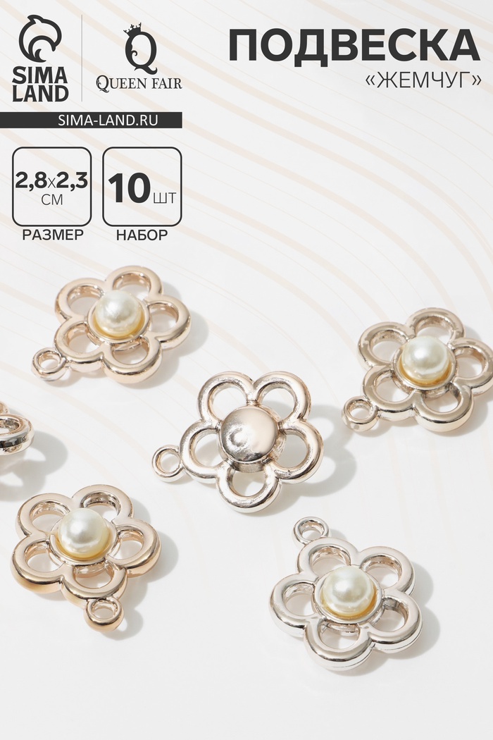 Подвеска «Жемчуг» цветок 2,8×2,3×0,7 см, (набор 10 шт.), цвет белый в золоте