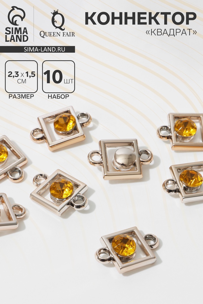 Коннектор «Квадрат» 2,3×1,5×0,6 см, (набор 10 шт.), цвет золотой