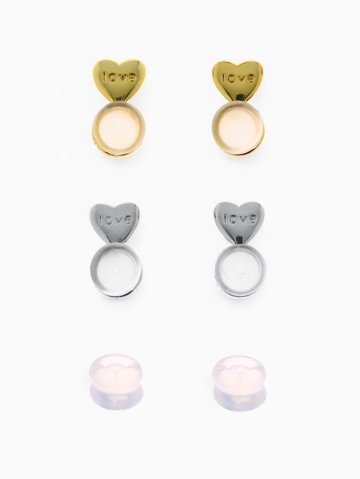 Заглушки силиконовые «Сердце» поддерживающие (3 пары), цвет золото, серебро