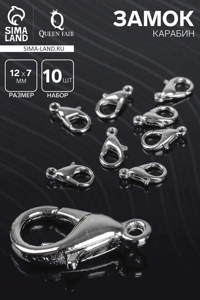 Замок-карабин, (набор 10 шт.), 12×7 мм, цвет серебро