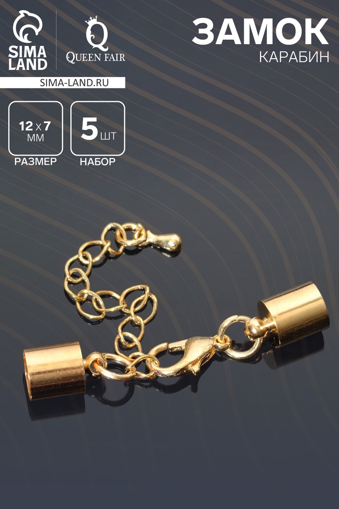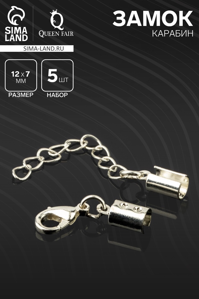 Замок-карабин (набор 5 шт.), 12×7 мм с удлинителем и обжимными круглыми концевиками 10×5 мм
