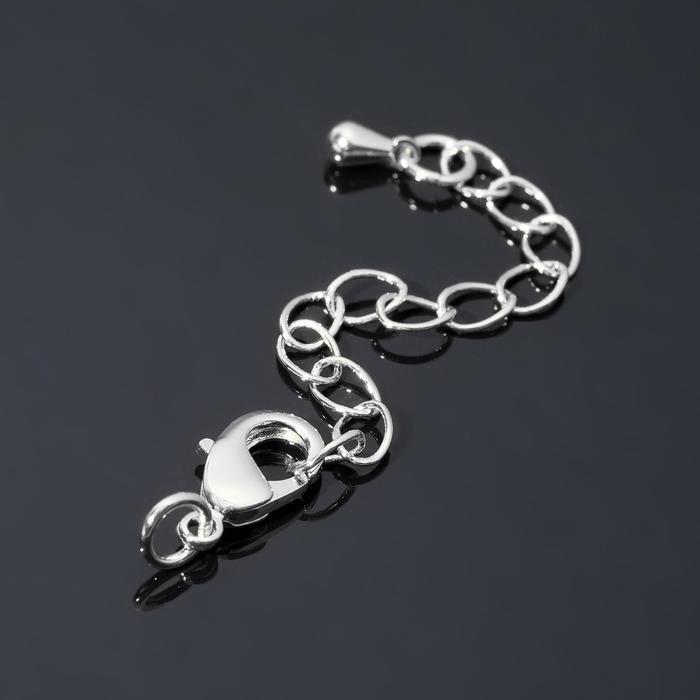 Замок-карабин родированный 10 мм «Капелька» с удлинителем 5 см, цвет серебро