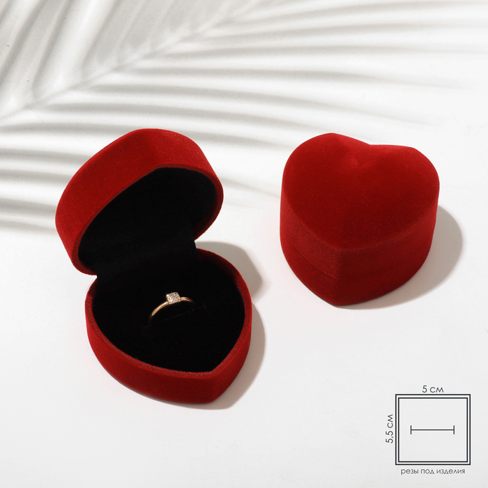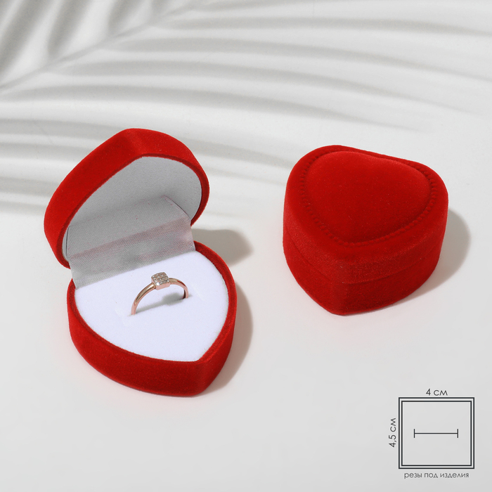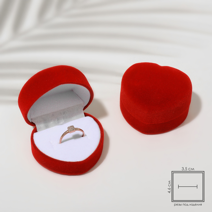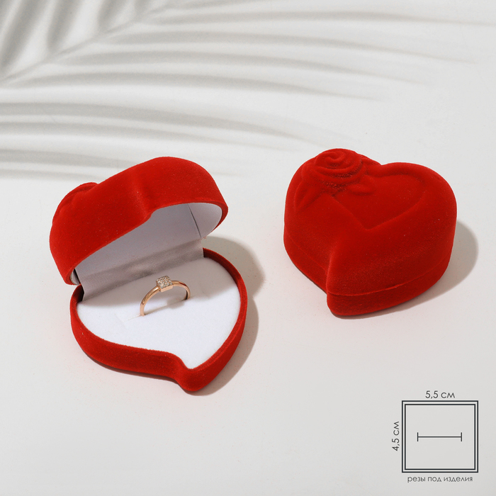 Футляр бархатный под кольцо/серьги «Сердце, роза», 6×6, цвет красный, вставка белая