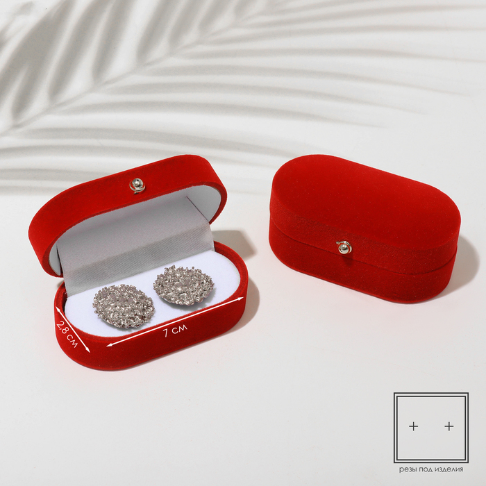 Футляр бархатный под серьги/ кольца/запонки «Овал вытянутый» 7,5×4, цвет красный, вставка белая