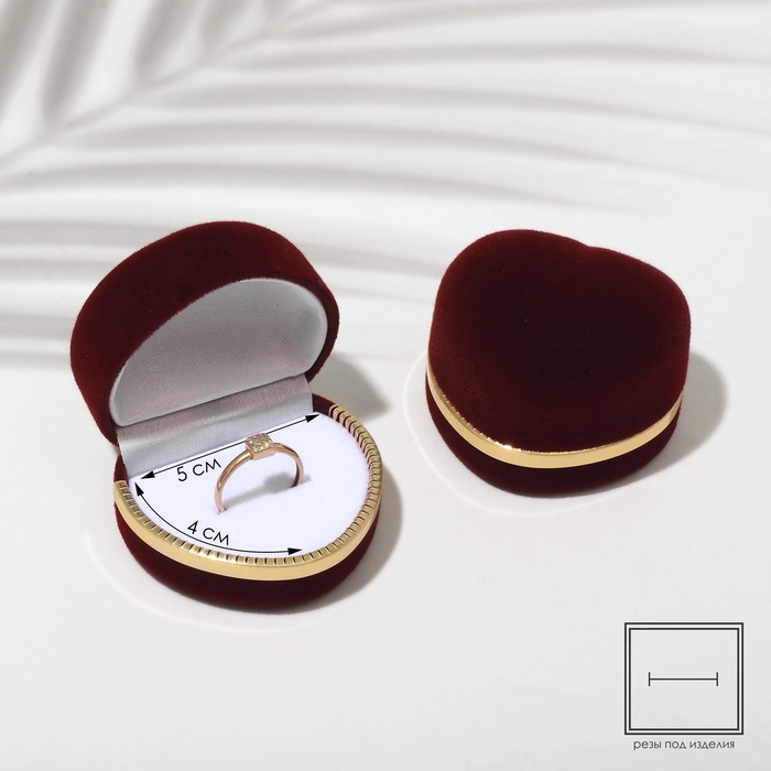 Футляр бархатный под кольцо/серьги «Сердце» 4×5, цвет бордовый с золотом