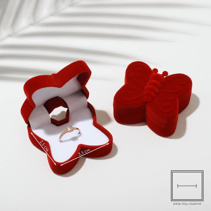 Футляр бархатный под серьги/кольцо «Бабочка», 5×5.5, красный, вставка белая