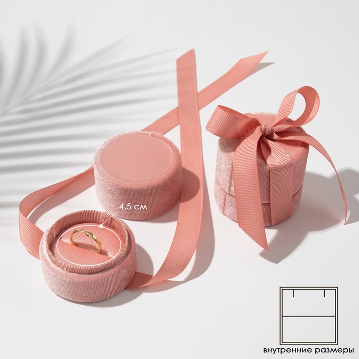 Футляр из корейского бархата под серьги/кольцо «Сюрприз» 5,8×5,3 см, цвет светло-розовый