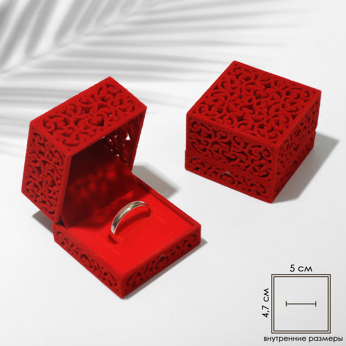Футляр бархатный под кольцо/серьги «Кружево», 6×6, красный