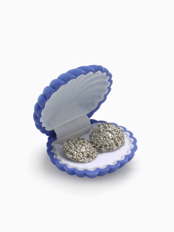 Футляр под серьги, кулон «Ракушка», 6×5.5 см, бархатный, небесный