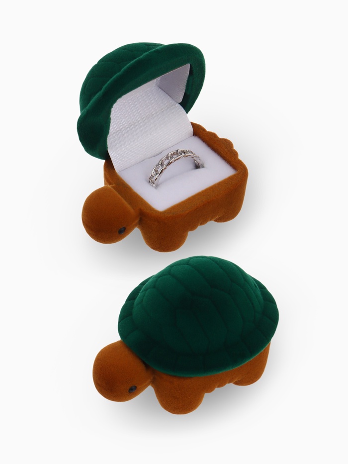Футляр бархатный под серьги/кольцо «Черепашка», 4.2×6,8, цвет зелёно-коричневый, вставка белая