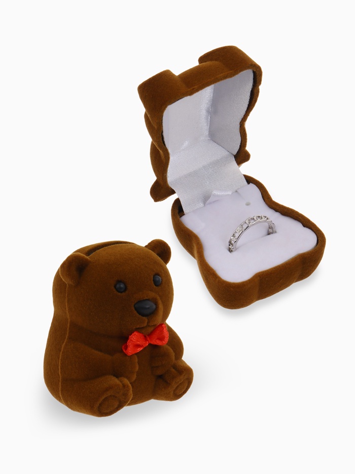 Футляр бархатный под кольцо «Медвежонок» с бантом, 4.6×5, цвет коричневый, вставка белая