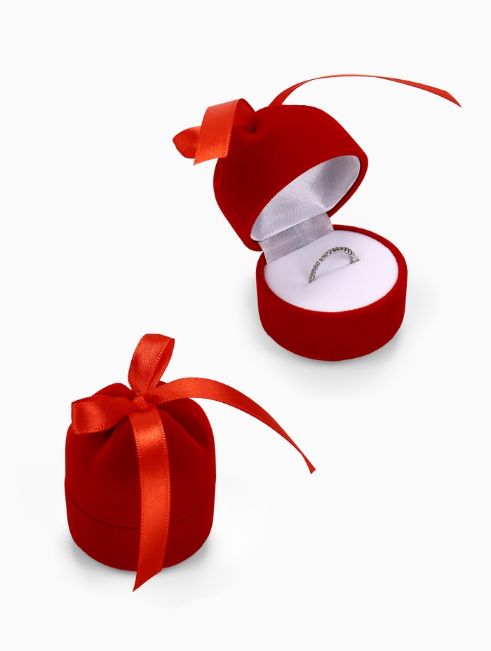 Футляр бархатный под серьги/кольцо «Сердце» с лентой, 6.2×6,2, цвет красный