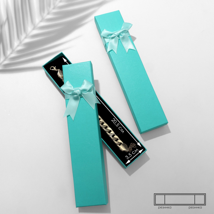 Коробочка подарочная под браслет/цепочку/часы «Бархат», 20.5×4 см, бирюзовая, вставка чёрная