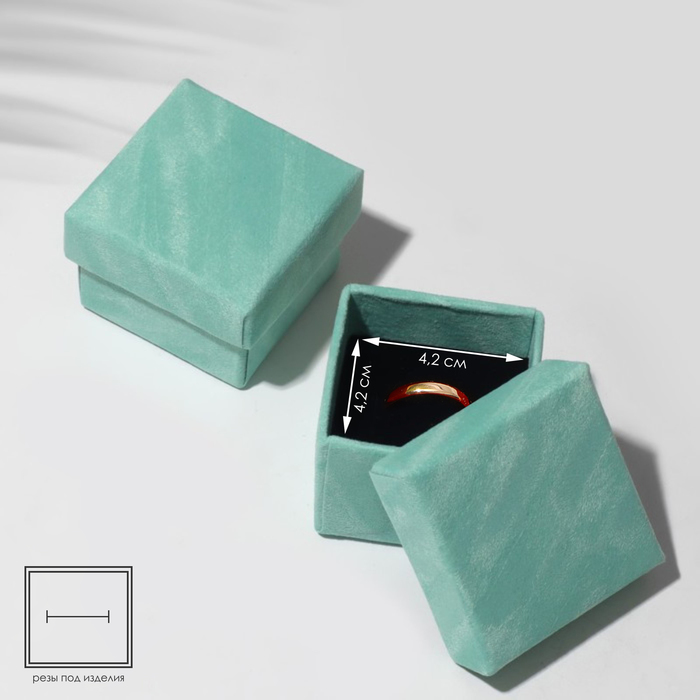 Коробочка подарочная под кольцо/серьги «Бархат», 5×5 (размер полезной части 4.2×4.2 см), бирюзовая, вставка чёрная