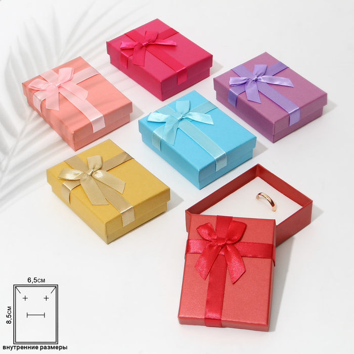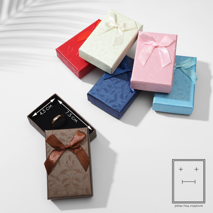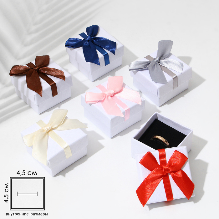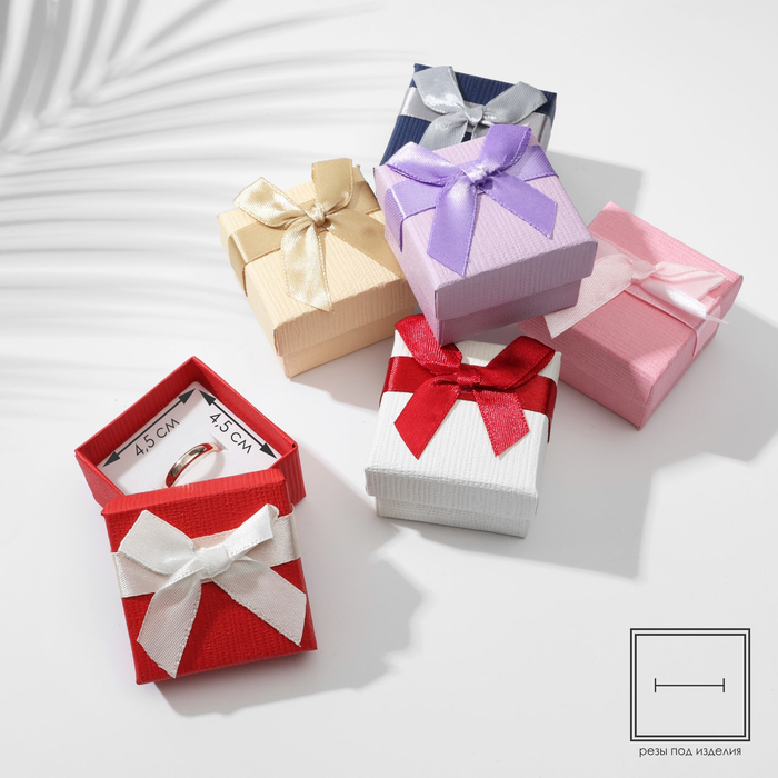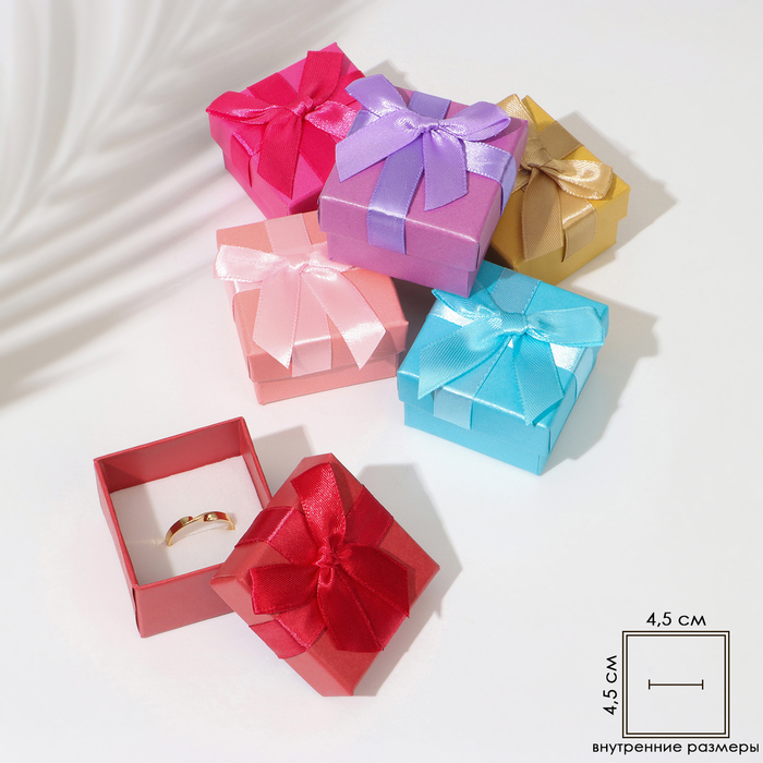 Коробочка подарочная под кольцо/серьги «Бантик» минимализм, 5×5 (размер полезной части 4.5×4.5 см), МИКС, вставка чёрная