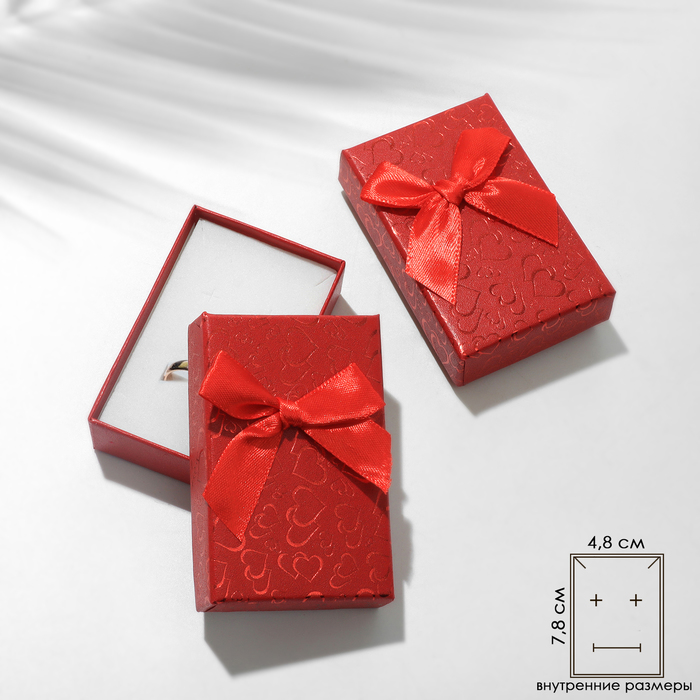 Коробочка подарочная под серьги/кулон/кольцо «Блестящие сердца», 5×8, красная, вставка белая