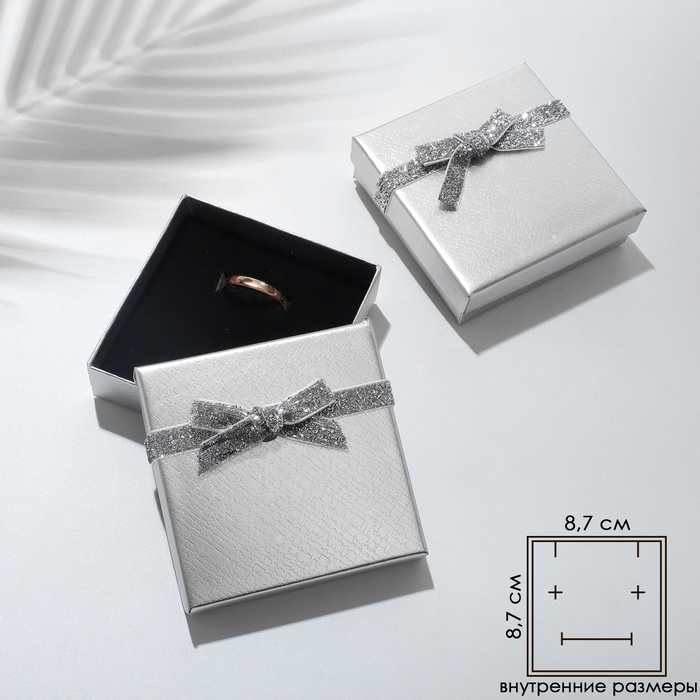 Коробочка подарочная под серьги/кольцо «Блеск», 5×5 (размер полезной части 4.5×4.5 см), цвет серебро