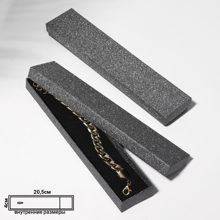 Коробочка подарочная под браслет/цепочку/часы «Блеск», 21×4 см, чёрная, вставка чёрная