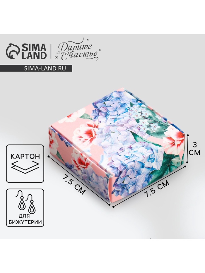 Коробка под бижутерию, упаковка, «Цветы», 7.5 х 7.5 х 3 см