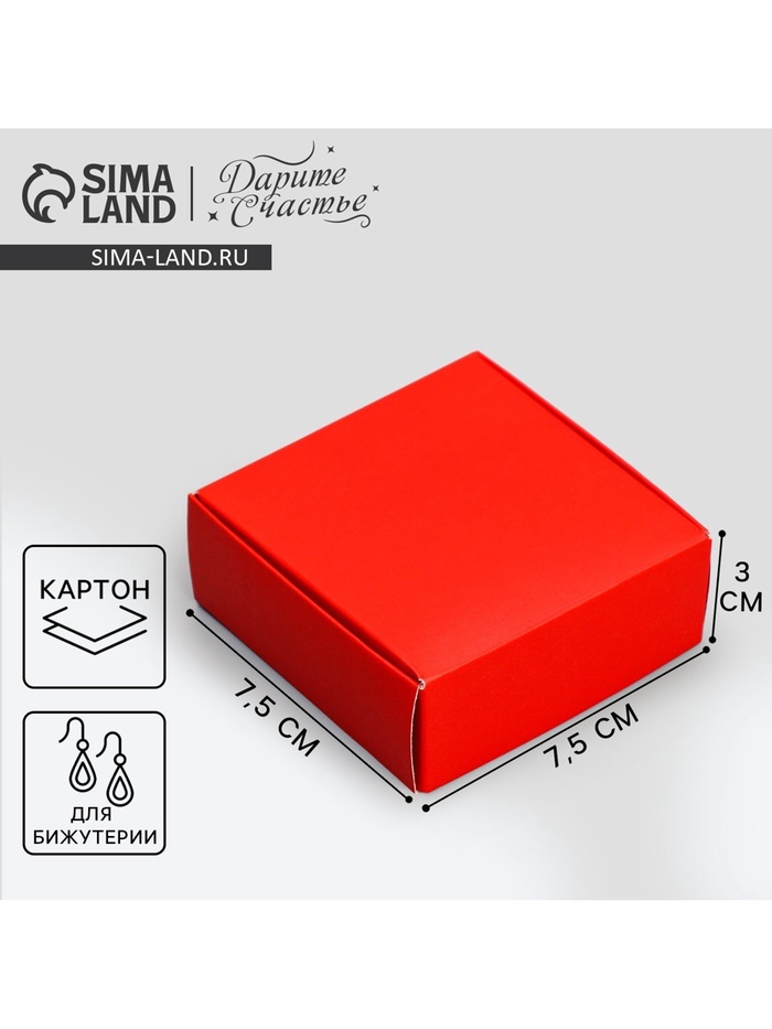 Коробка подарочная под бижутерию двухсторонняя, упаковка, «Красная», 7.5 х 7.5 х 3 см