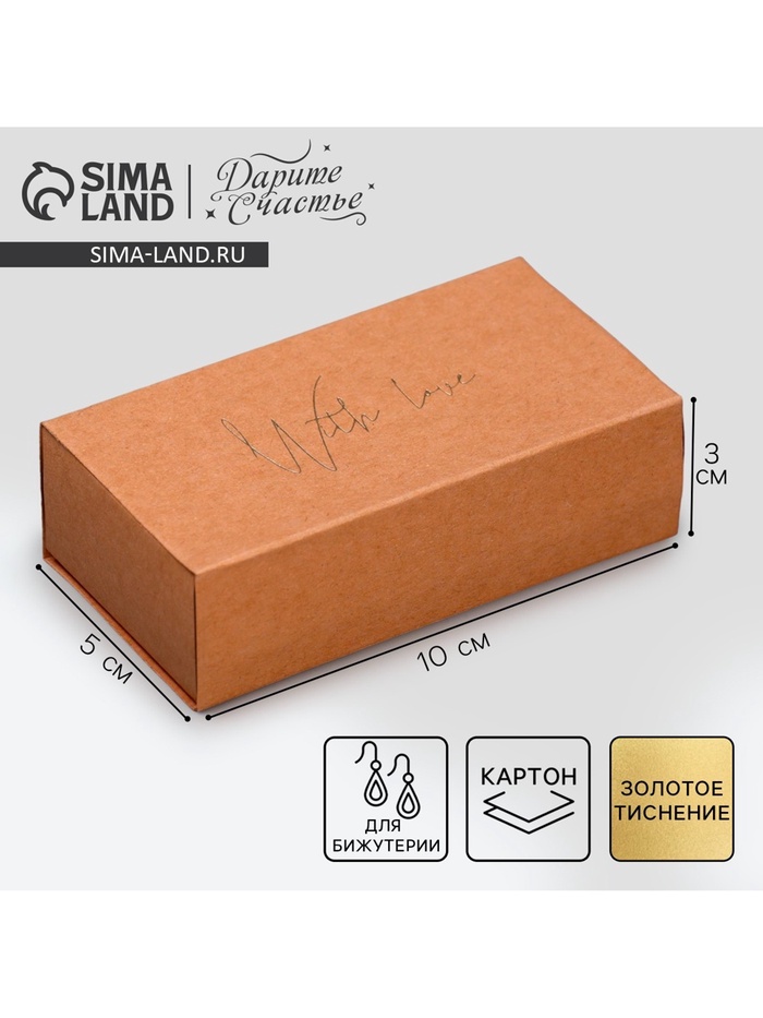 Коробка подарочная под бижутерию крафтовая, упаковка, «With love», 10 х 5 х 3 см