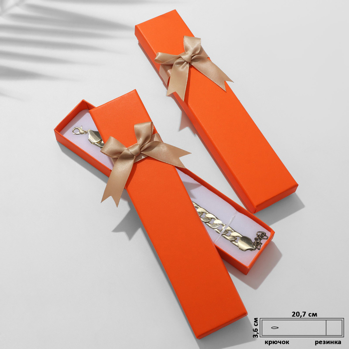 Коробочка подарочная под браслет/цепочку/часы «Контраст» 21×4 см, оранжевая, вставка белая