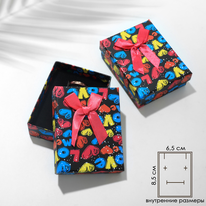 Коробочка подарочная под серьги/кулон/кольцо «Микс сердечек», 7×9, цветная, вставка чёрная