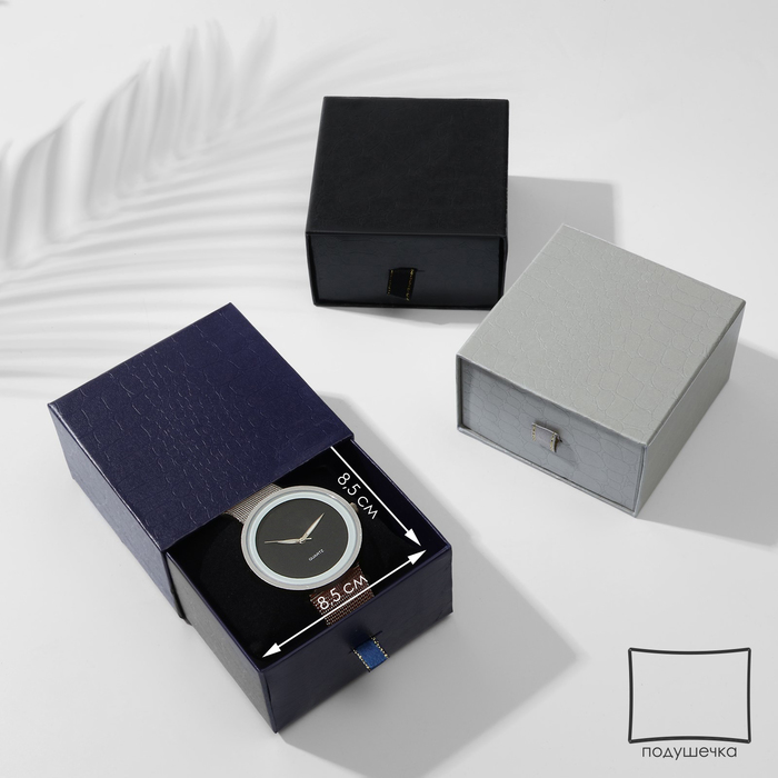 Коробочка подарочная под браслет/часы «Рептилия», 9×9 (размер полезной части 8.5×8.5 см), выдвижная, МИКС, вставка чёрная
