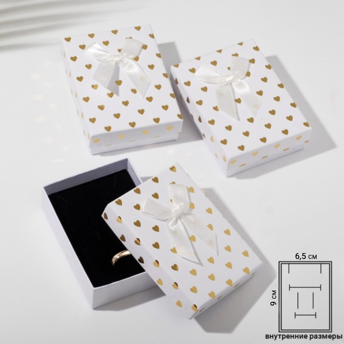 Коробочка подарочная под набор «Сердечки», 7×10 (размер полезной части 6.5×9 см), белая, вставка чёрная