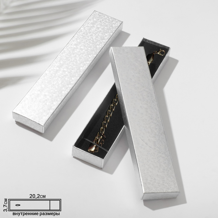 Коробочка подарочная под браслет/цепочку/часы «Драгоценность» 21×4.5 см (размер полезной части 20.2×3.7 см), цвет серебро, вставка чёрная
