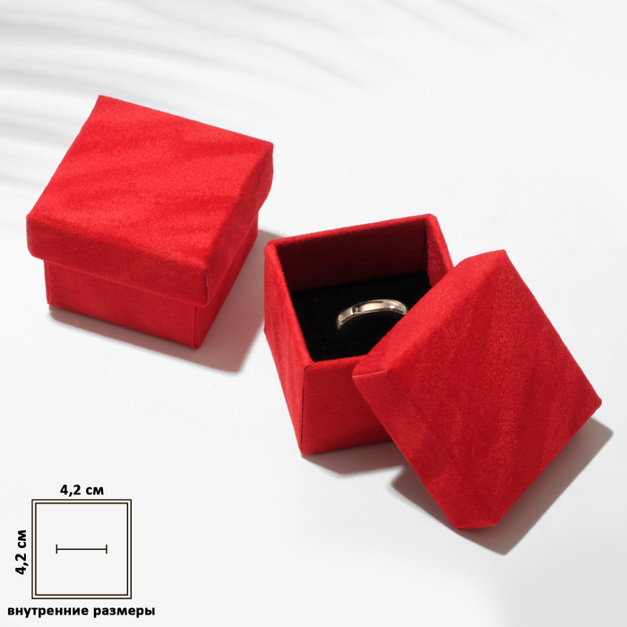 Коробочка подарочная под кольцо/серьги «Бархат», 5×5 (размер полезной части 4.2×4.2 см), красная, вставка чёрная