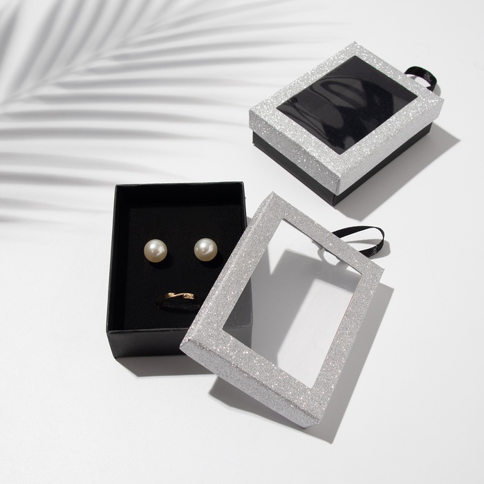 Коробочка подарочная под кольцо/серьги «Сияние», 5×5 (размер полезной части 4.5×4.5 см), цвет серебро, вставка чёрная