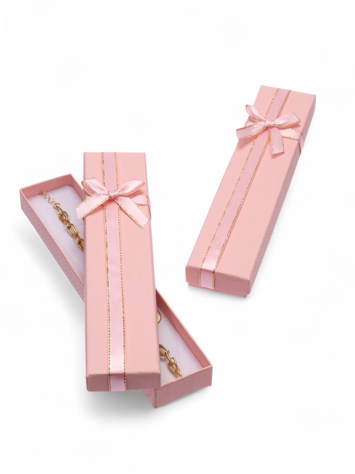 Коробочка подарочная под браслет/цепочку/часы, 21×4 см (размер полезной части 20.2×3.7 см), розовая, с, перламутровая, блеском, вставка белая