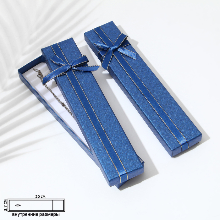 Коробочка подарочная под браслет/цепочку/часы «Бантик» стёганый принт, 21×4 см, синяя, вставка белая