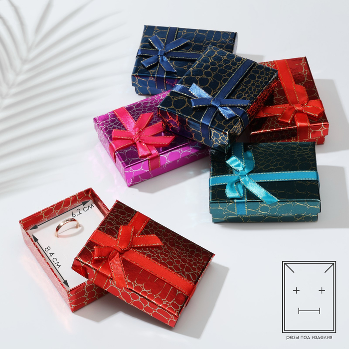 Коробочка подарочная под кольцо/серьги «Перламутр» с бантиком, 4×4, МИКС, вставка белая