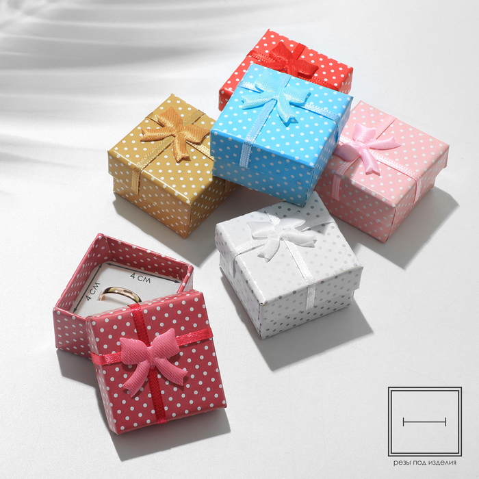 Коробочка подарочная под кольцо/серьги «Горошек» с бантом, 4.5×4.5, МИКС, вставка белая
