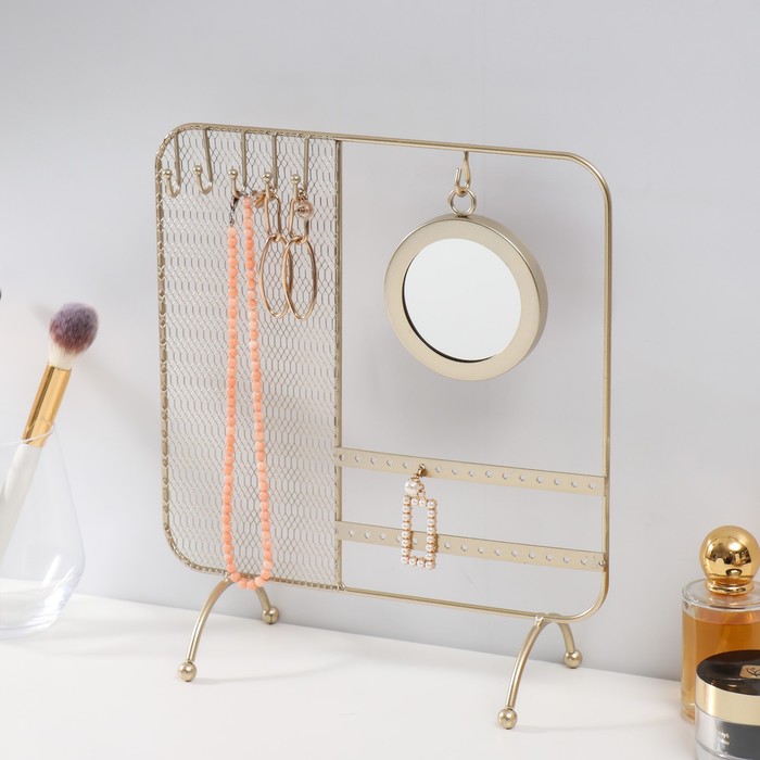 Сувенир металл с зеркалом подставка для украшений "Сети" золото 25,3х10х28,7 см